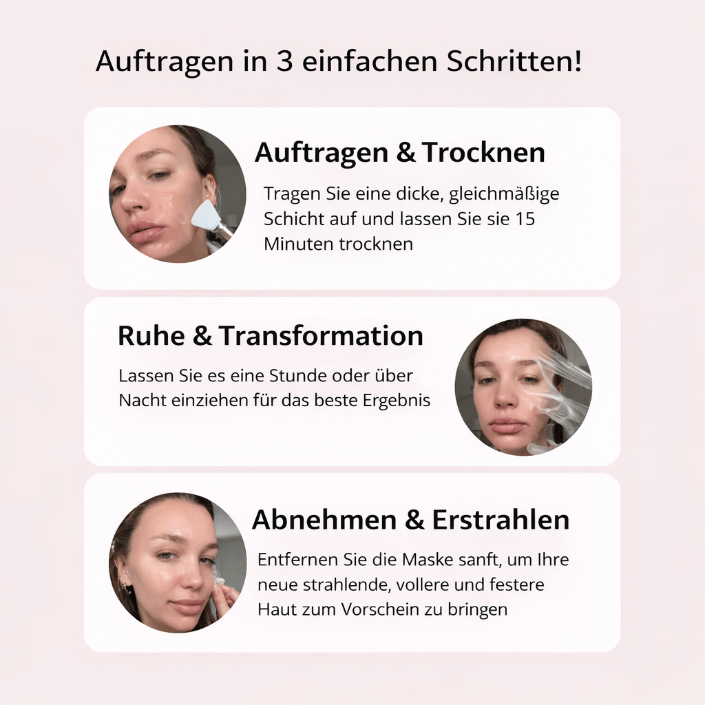 Erleben Sie über Nacht sichtbar frischere, glattere Haut. Diese koreanische Peel-off-Maske mit Kollagen, Hyaluronsäure und Niacinamid spendet tiefgehende Feuchtigkeit, strafft und regeneriert Ihre Haut, während Sie schlafen. Das atmungsaktive Gel trocknet zu einem dünnen Film, der sich morgens leicht entfernen lässt – ohne Flecken oder Rückstände zu hinterlassen. Für alle, die auch nach einer kurzen Nacht frisch aussehen möchten.